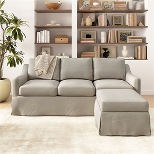 Harper 80W Sofa and Storage Ottoman with Slipcovers - Sand Basketweave Fabric