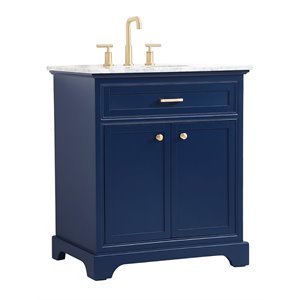 Elegant Decor Americana 30" Solid Wood and Metal Single Bathroom Vanity in Blue