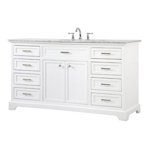 Elegant Decor Americana 60" Metal MDF Marble Single Bathroom Vanity in White