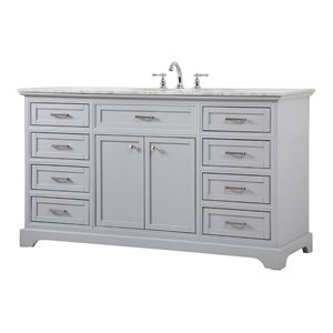 Elegant Decor Americana 60" Metal MDF Marble Single Bathroom Vanity in Gray