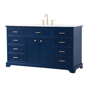 Elegant Decor Americana 60" Metal MDF Marble Single Bathroom Vanity in Blue