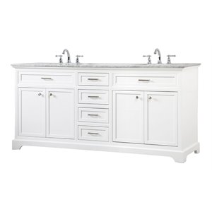 Elegant Decor Americana 72" Metal MDF Marble Double Bathroom Vanity in White