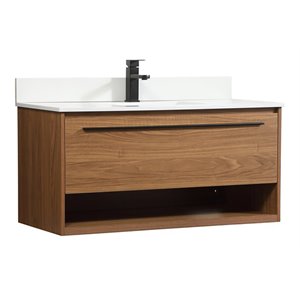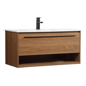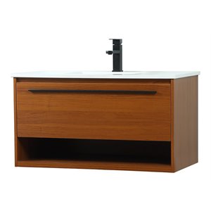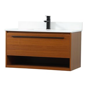Elegant Decor Roman 36" Aluminum Alloy MDF Single Bathroom Vanity in Teak