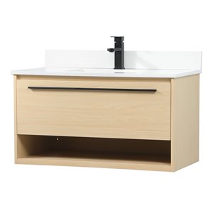 Elegant Decor Roman 36" MDF Single Bathroom Vanity with Backsplash in Maple