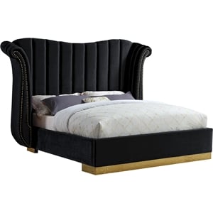 Meridian Furniture Flora Solid Wood and Velvet King Bed in Black