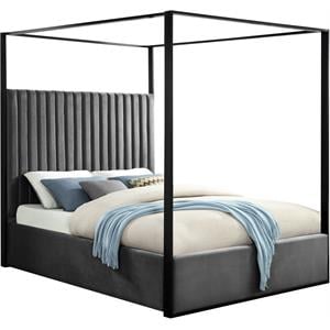 Meridian Furniture Jax Solid Wood and Velvet Queen Bed in Gray