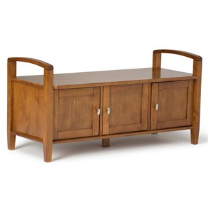 Simpli Home Warm Shaker Wood 44" Transitional Entryway Bench in Tobacco Brown