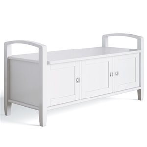 Simpli Home Warm Shaker Wood 44" Transitional Entryway Bench in White