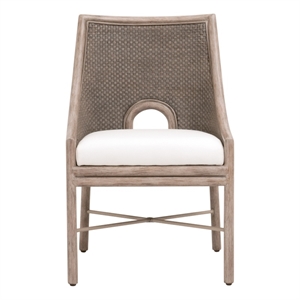 Essentials For Living Woven Lucia Rattan Arm Chair in White/Light Gray